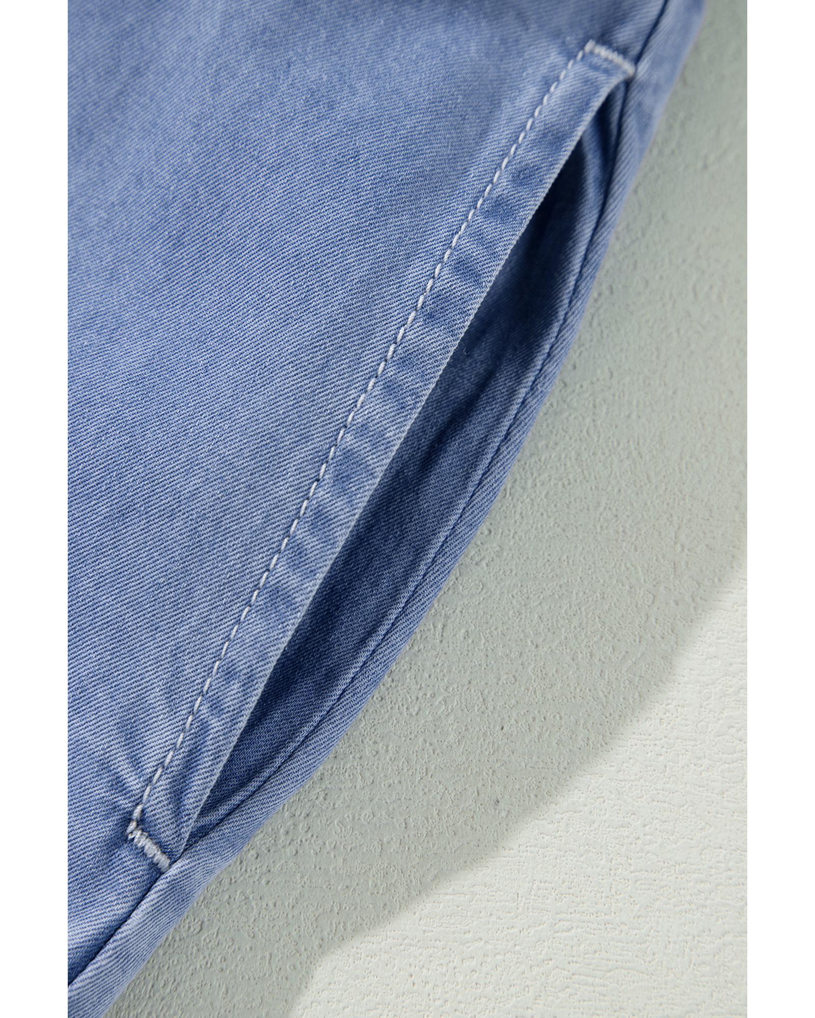 Myosotis Chambray Deep V Neck Bracelet Sleeve Maxi Dress – L
