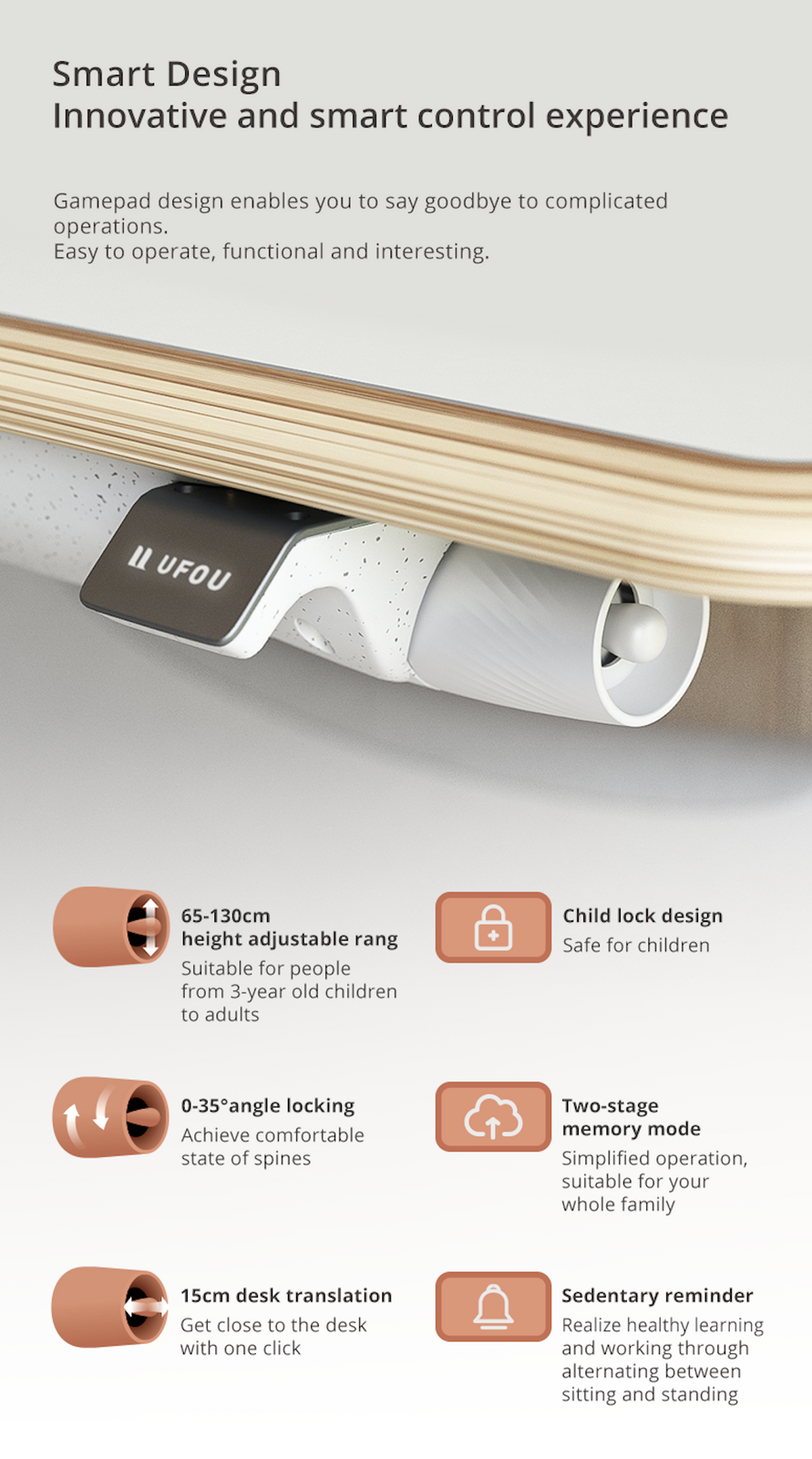 - Versatile Adjustability: Standard height (650mm to 1300mm), desktop tilt angle (0° to 35°), and horizontal depth adjustments cater to a variety of activities and postures.