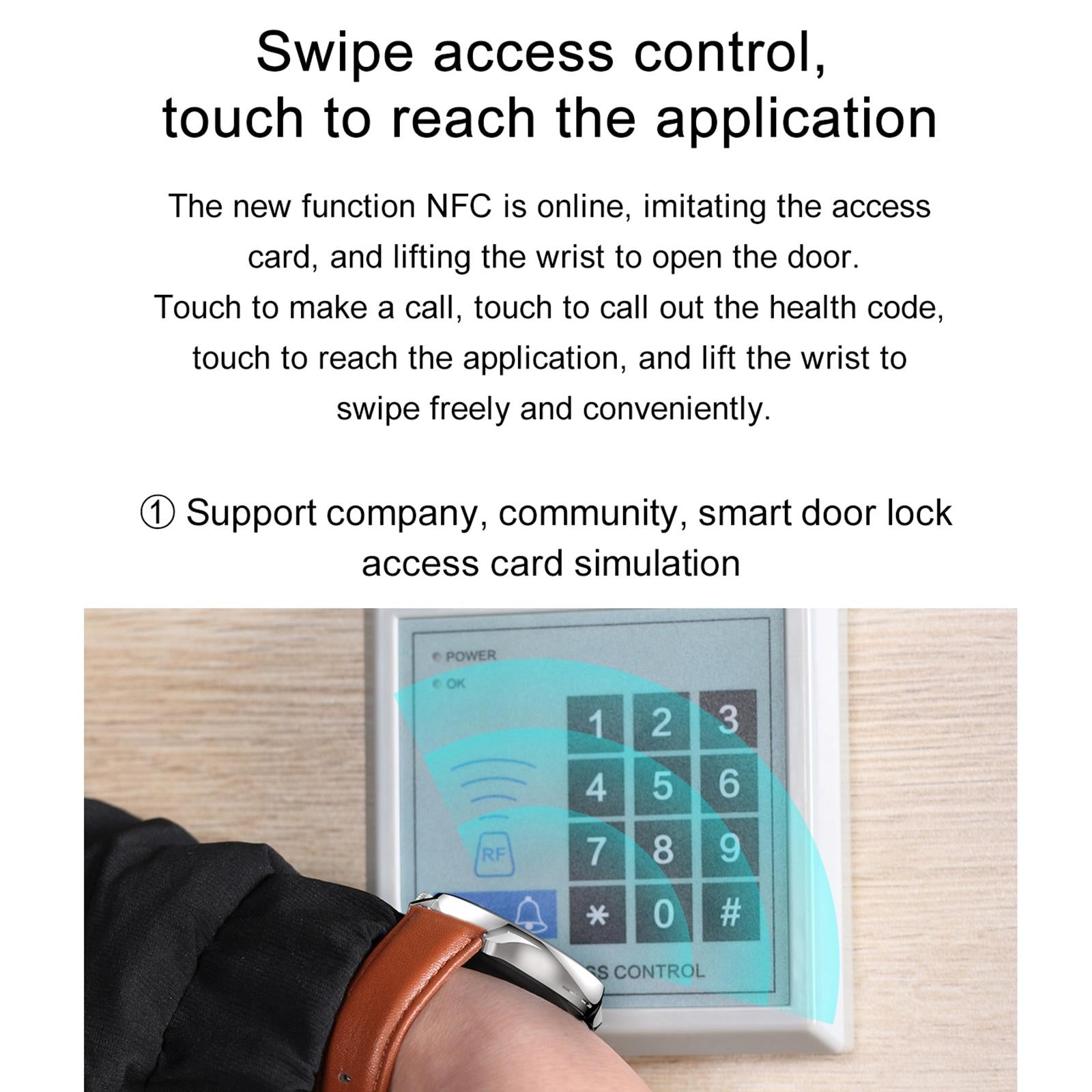 1.36 Inch Amoled Screen Leather Strap Smart Watch Support Nfc Function / Blood Oxygen Monitoring – Silver