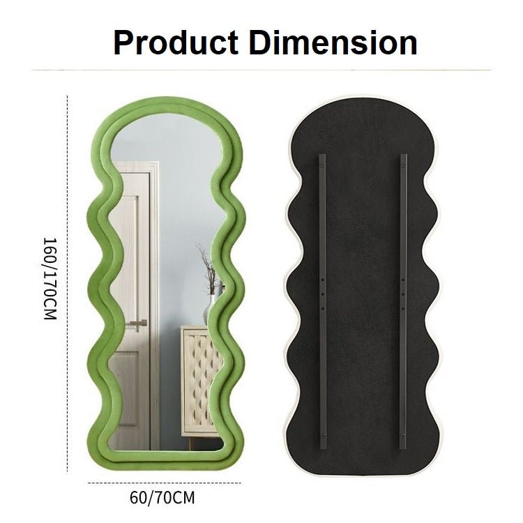 WAVY DESIGN: The shape of the full length mirror uses an irregular design. The wavy shape makes the entire mirror looks unique. It is very conspicuous in any space and makes your room look tasteful.