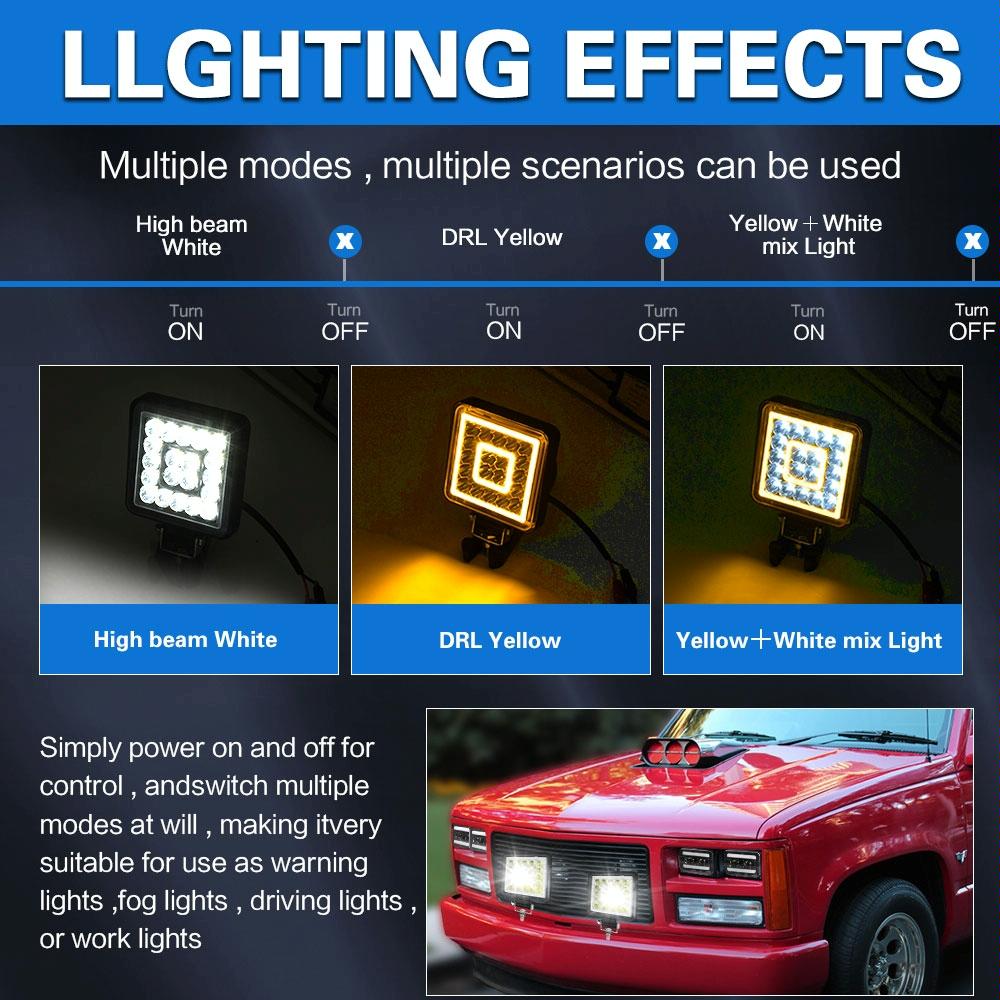 • 1 x 1 Pair 4 Inch Square Double Circle Angel Eye Work Light Black