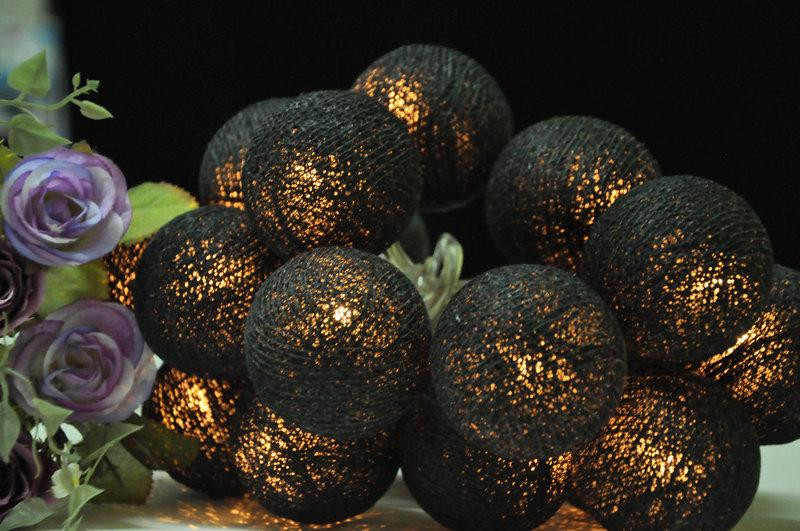 Black Cotton Ball String Fairy lights – 5cm diameter