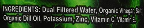 Dual filtered water, organic vinegar, salt, organic dill oil, potassium, vitamin C, vitamin E, zinc.