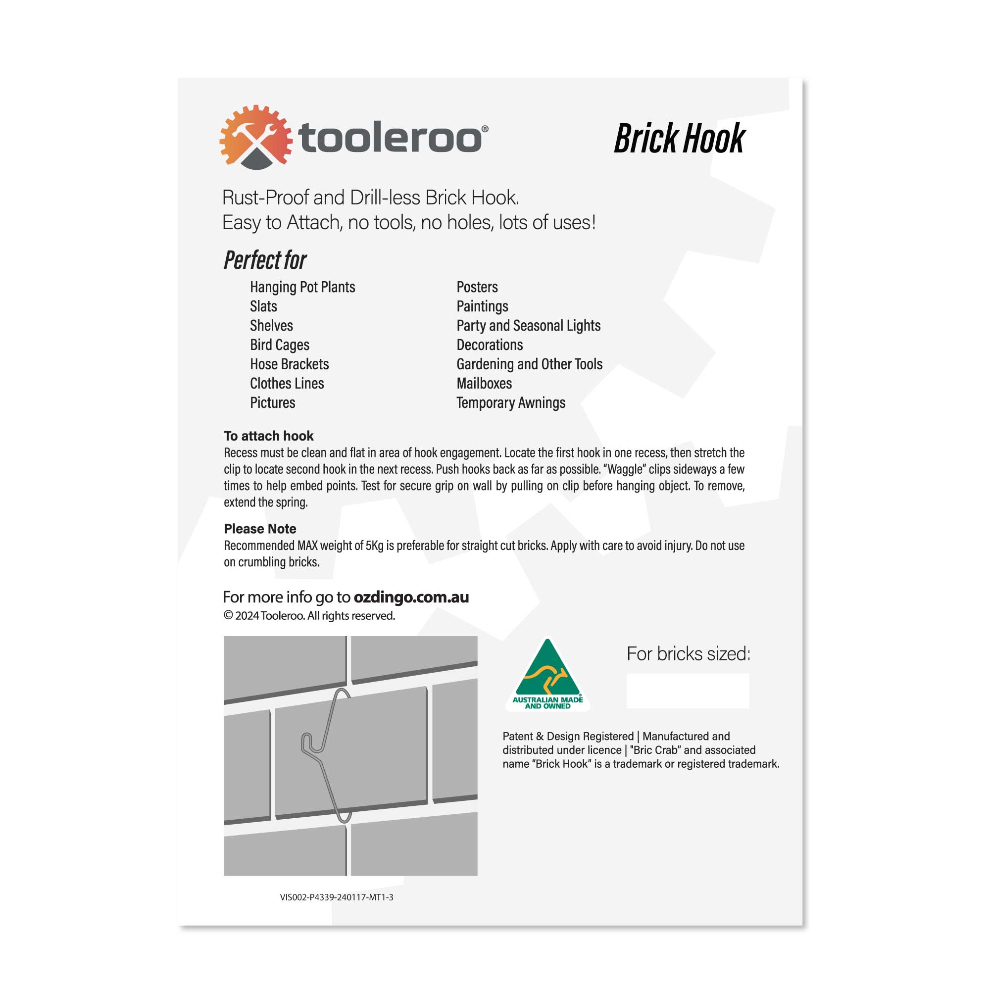 - Fits Standard Australian Bricks: 155-165mm