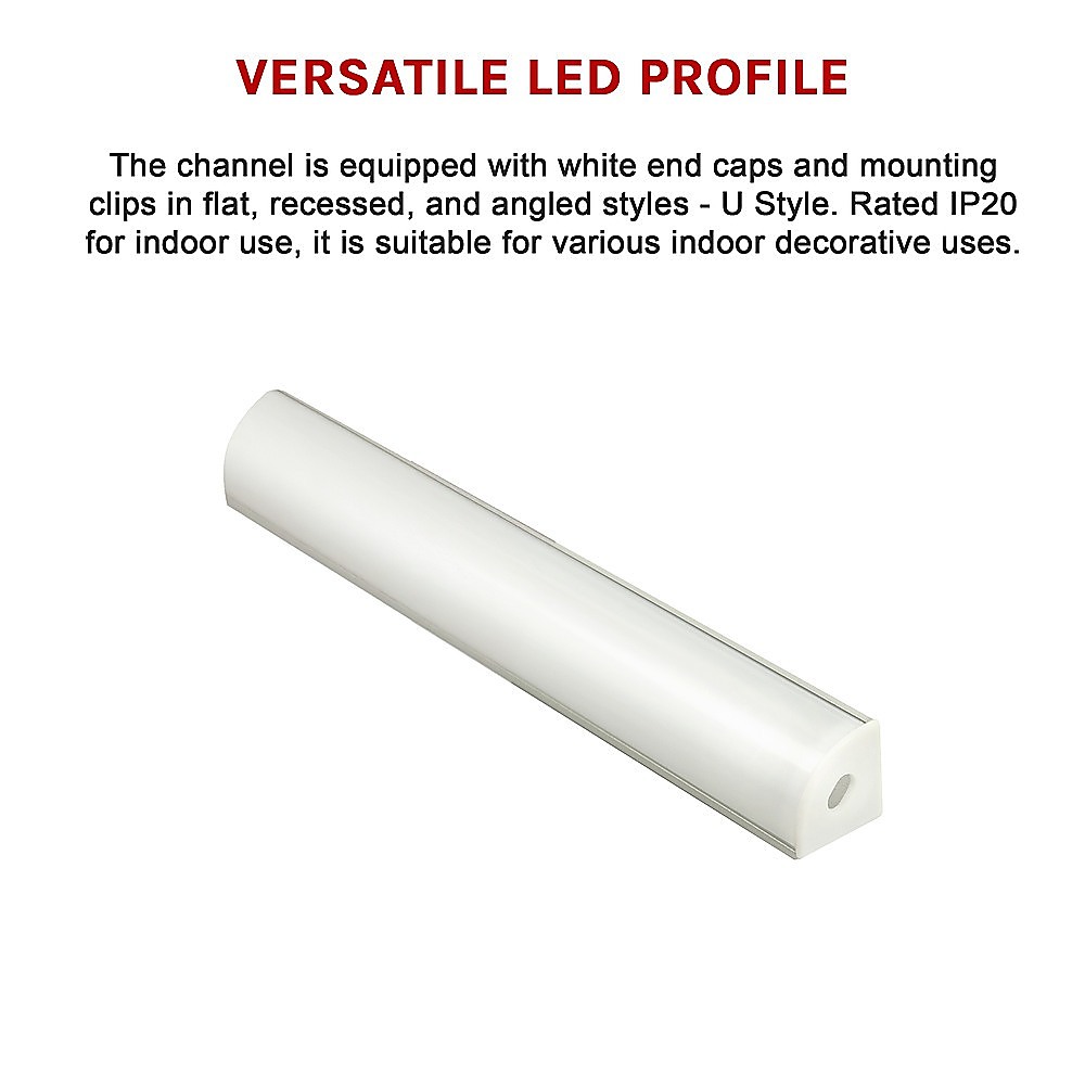 The channel is equipped with white end caps and mounting clips in flat, recessed, and angled styles – YW Style. Rated IP20 for indoor use, it is suitable for various indoor decorative uses, including: