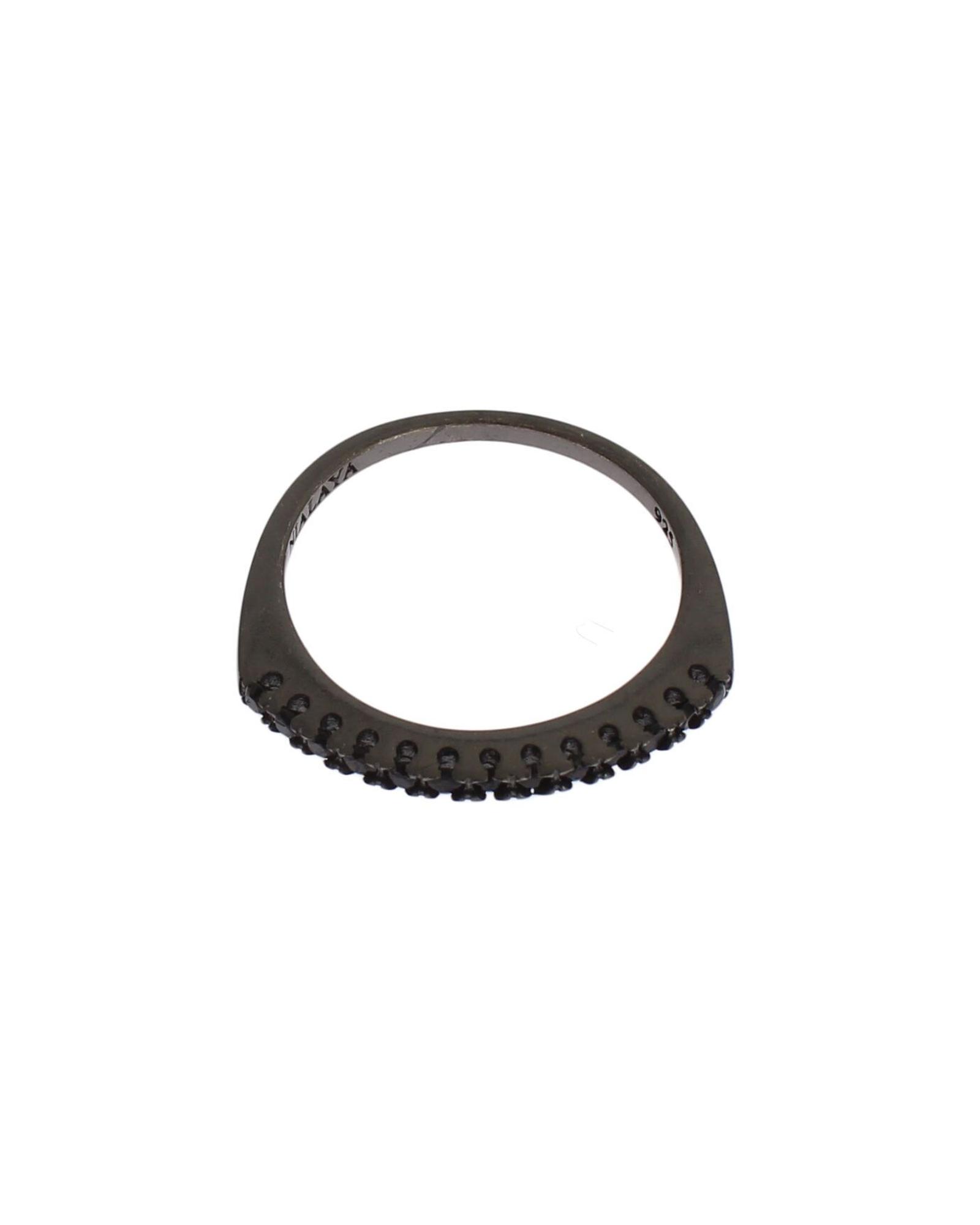 100% Authentic NIALAYA Sterling Silver Ring with Black CZ Crystals 47 EU Women
