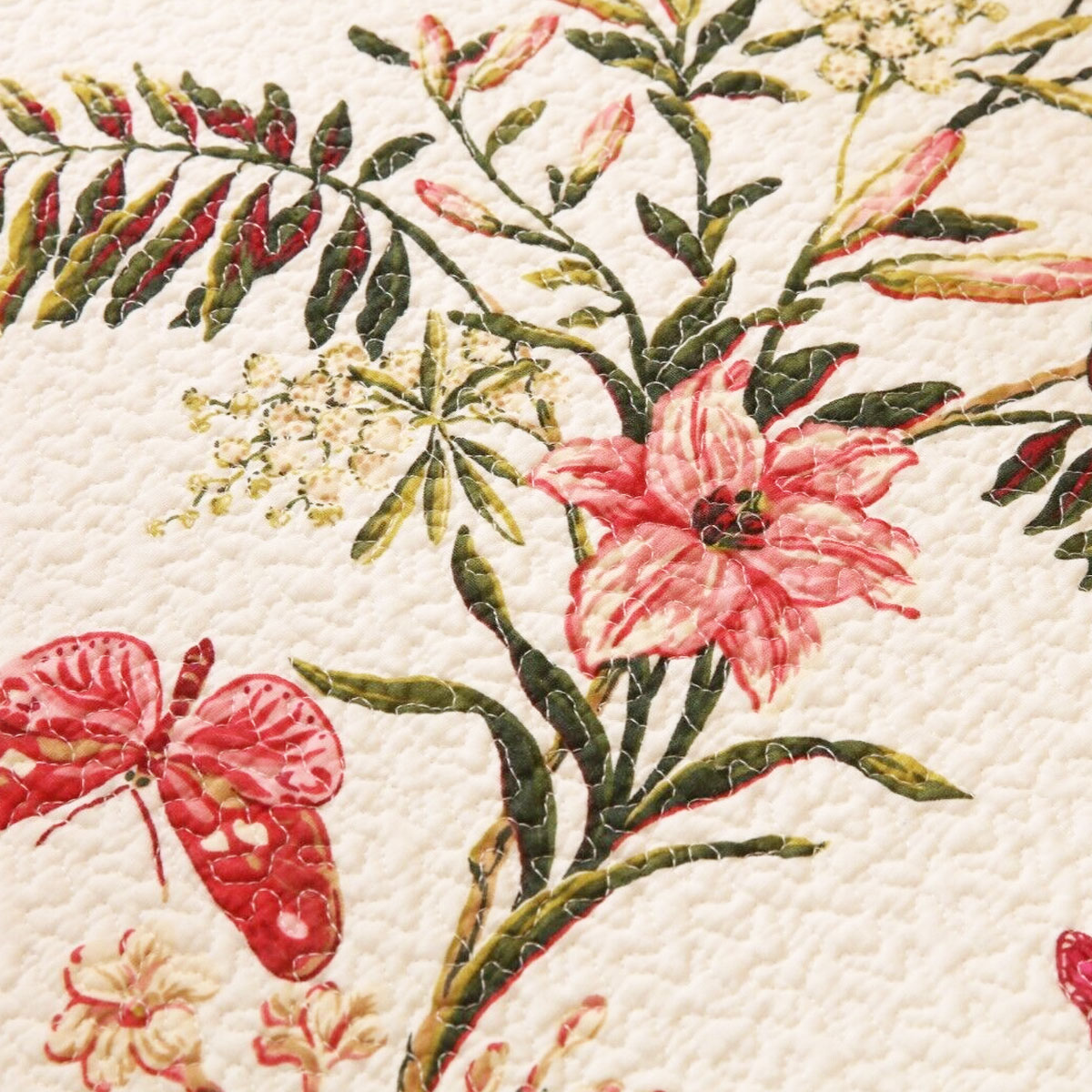 Bring the beauty of blossoms into your home with the 100% Cotton Lightly Quilted Coverlet Set Granada Cream Queen. It’s more than bedding – it’s an invitation to dream amidst petals and serenity. It features quilted floral pattern reminiscent of a serene garden in cream, brown, rose, pink, burgundy, green, and olive colour tones.