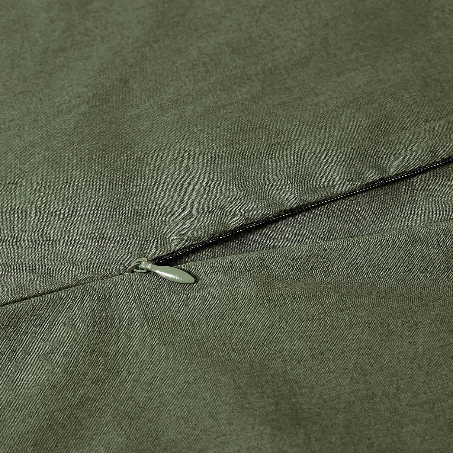100% Cotton Vintage Washed Bed Quilt Cover Set – Khaki Green – King Size