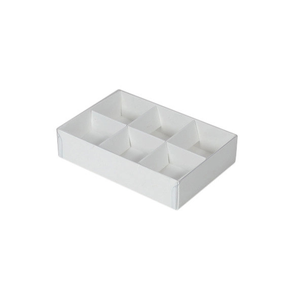 100 Pack of White Card Chocolate Sweet Soap Product Reatail Gift Box – 6 Bay Compartments – Clear Slide On Lid – 12x8x3cm
