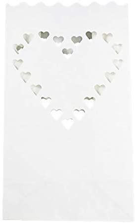 50 Pack White Heart Luminary Paper Candle Tea Light Lantern Bags Garden Wedding Anniversary Birthday Night Decorations Evening Party