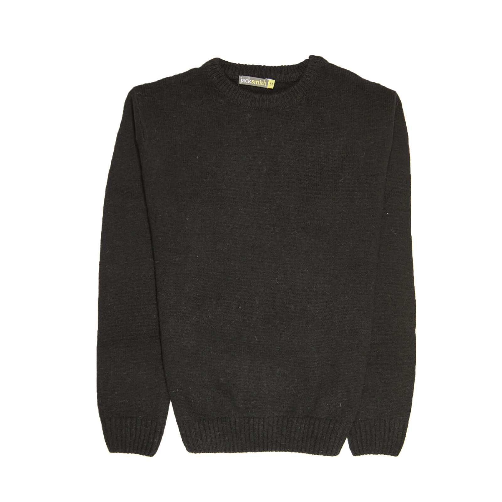 100% SHETLAND RAGG WOOL CREW Round Neck Knit JUMPER Pullover Mens Sweater Knitted – Plain Black – XXL