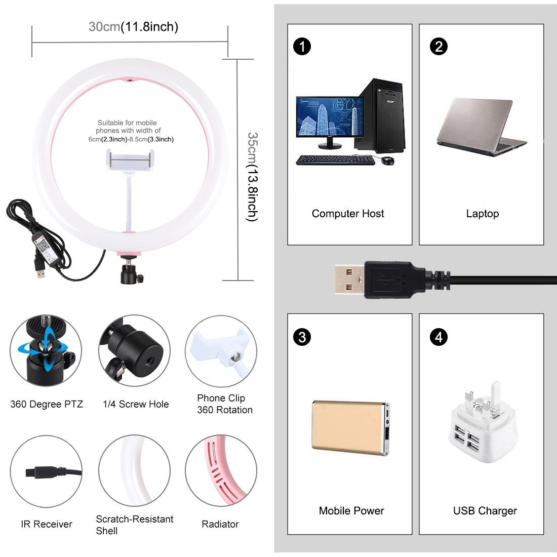 11.8 Dual-temp Led Ring Light with Tripod & Remote – Pink