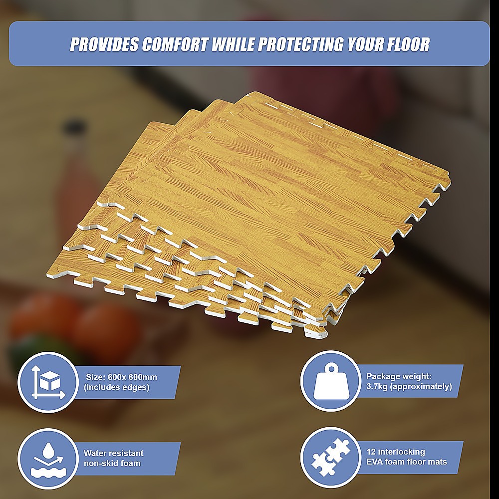 12 Tiles EVA Fitness Home Yoga Gym Interlocking Floor Puzzle Mat – Wood Colour
