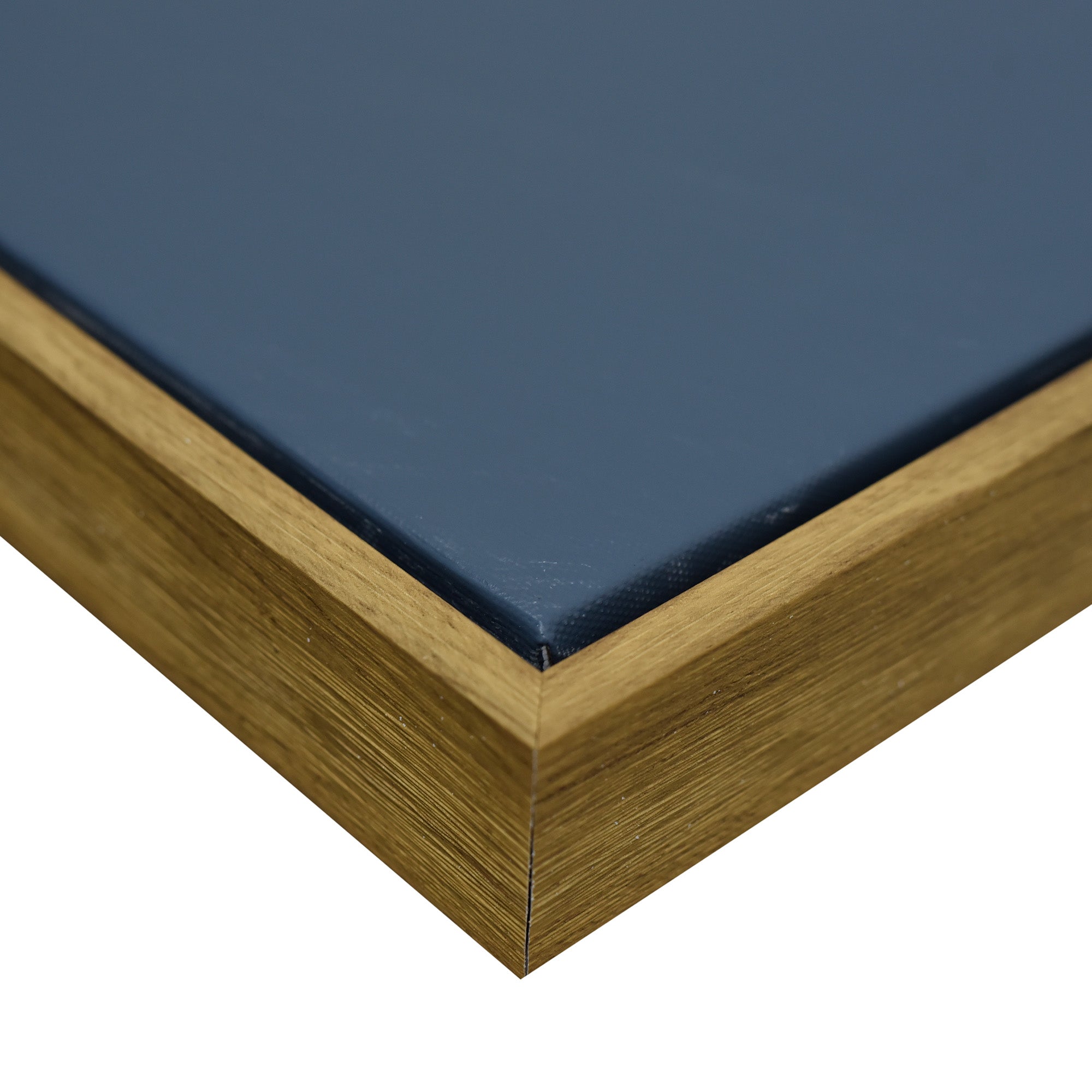 Stretched and gallery wrapped around a wooden stretcher and finished with a floating frame. There is a gap between the frame and print, which creates the floating effect and literally makes the canvas print stand out even more.