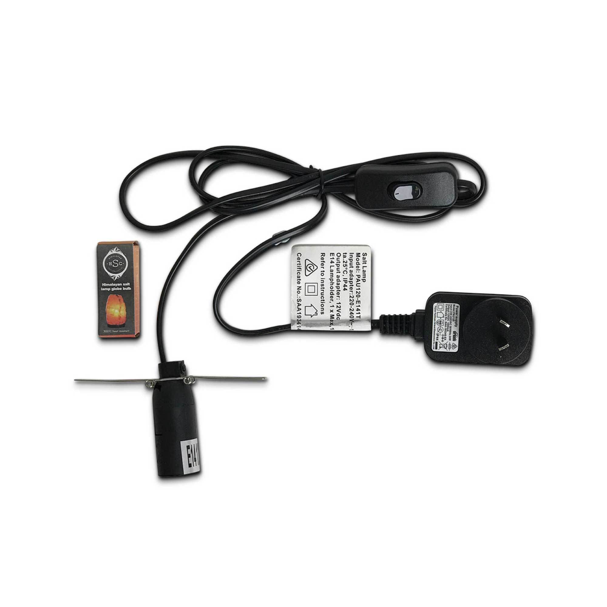 Replacement On/Off switch and 12V 12W light bulb replacement parts for Himalayan salt lamp. Safety tested and SAA approved.