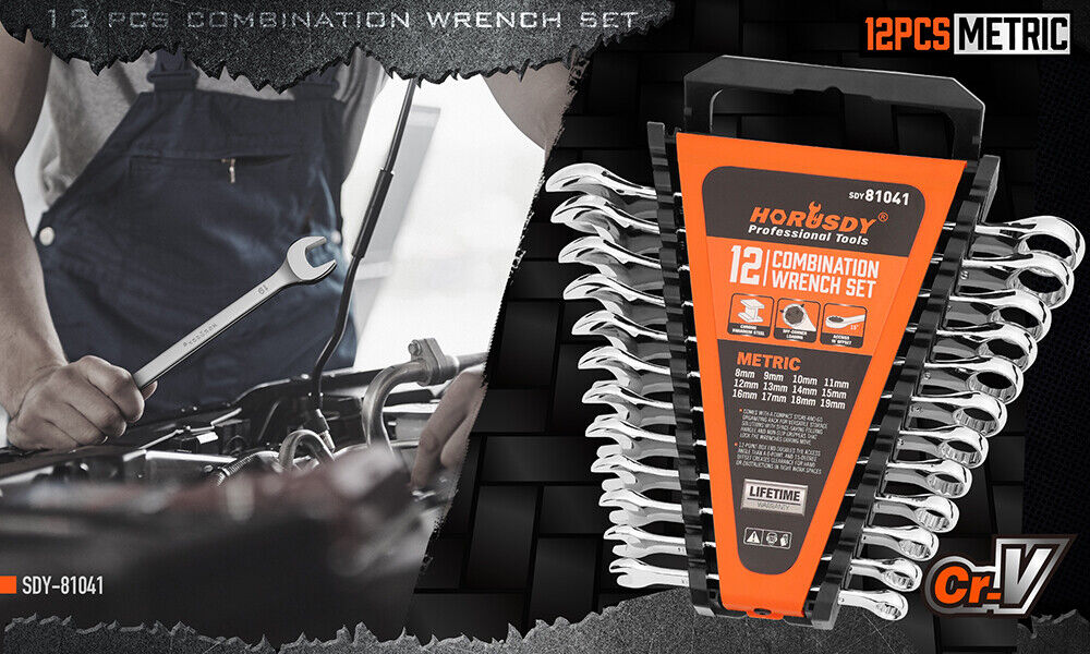 12x Metric Combination Spanner Ring Open Ended Combo Wrench CRV Storage Tool