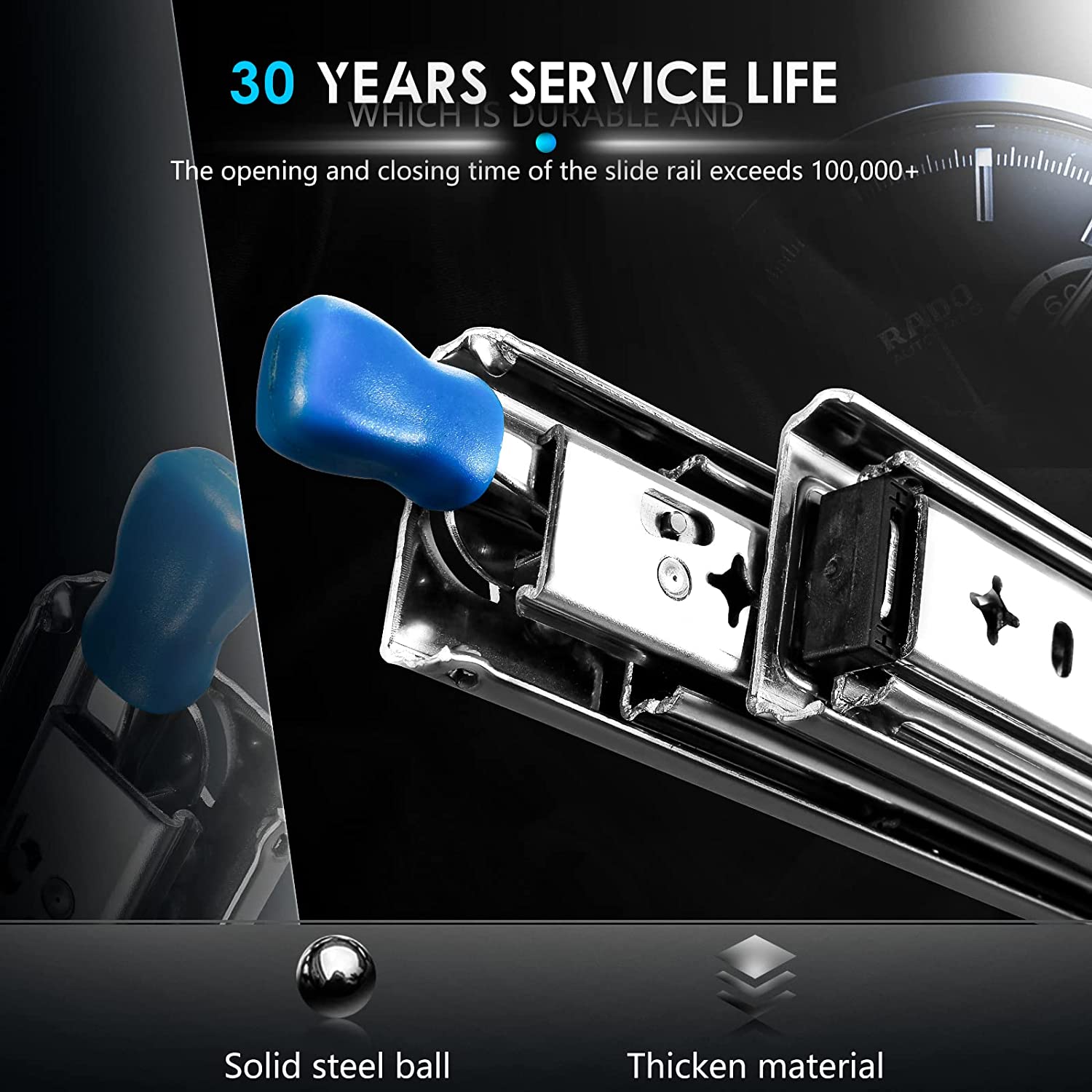 Featuring Lock Design. locked by the locking function.Prevent from sliding. Easy control and secure fixation. this slide rail opening and closing test 100,000 times. The service life is 30 years.