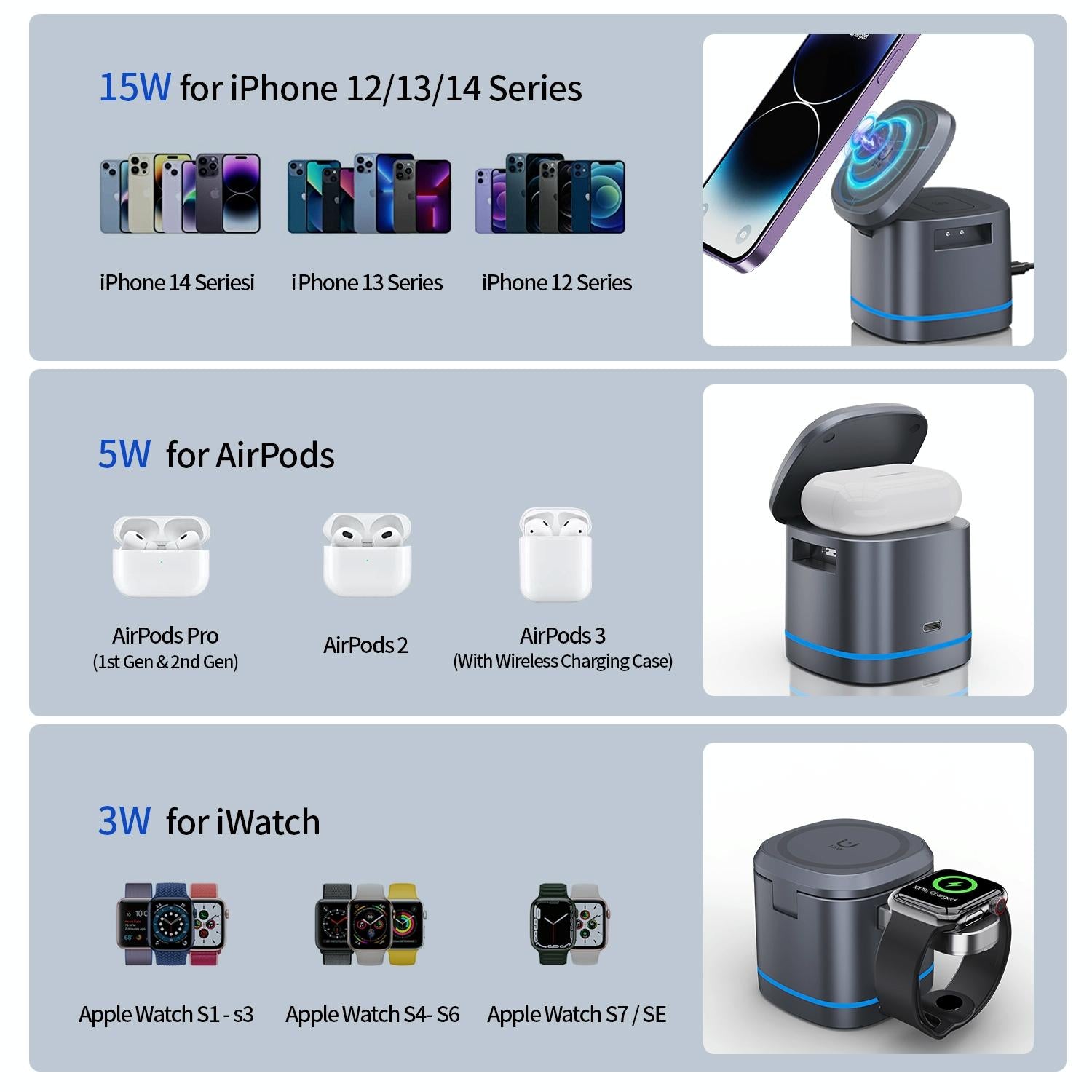 15W 3 In 1 Magnetic Wireless Charger – Grey