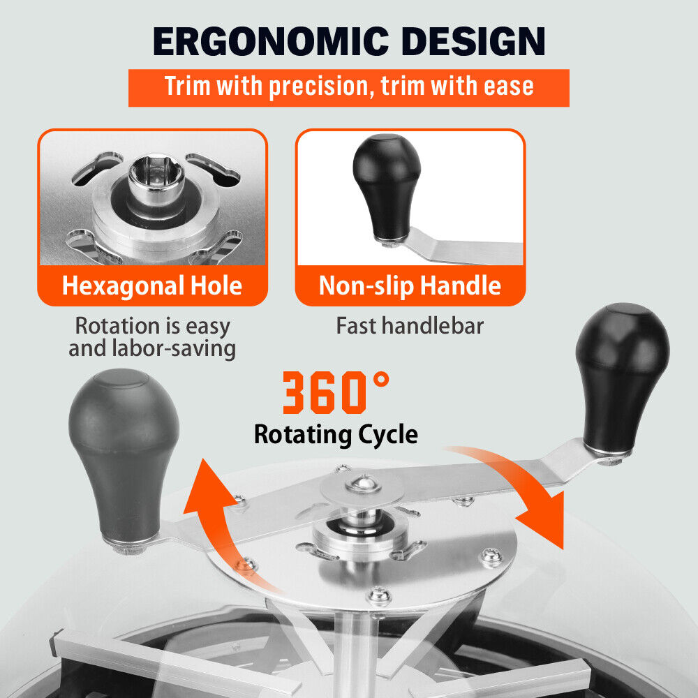 Visible Operation: With the clear lid of our leaf bowl trimmer, you can see the trimming in action from the front row. Watch your buds change before your eyes. The 19” stainless steel trim bowl is convenient to clean up in time and provide a clean and non-stick pruning surface, while the rubber pad ensures stability, keeping the trimmer securely in place for flawless trims.