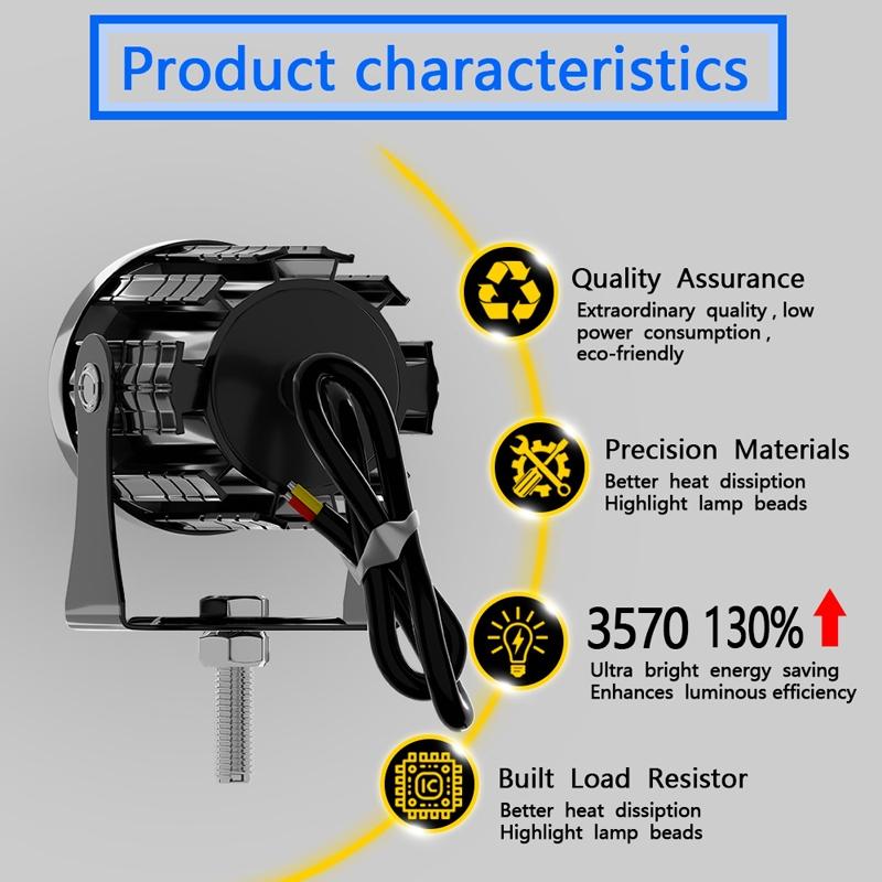 • 1 x 1Pair 12V – 85V Motorcycle Headlights Dual – Colour Automotive Led Working Headlights Colour: White + White Light With Flashing