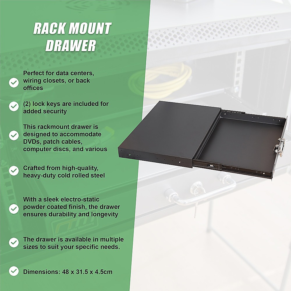 1U Locking Rack Mount Drawer Secure Steel Storage for 19″ Network Server
