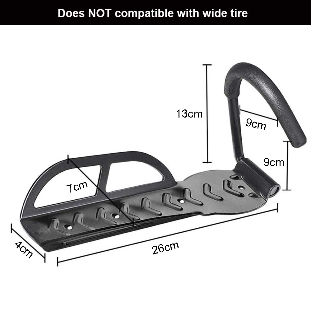 Our bike rack hook is designed to fit most of bikes.The hanger track has an inclined “fence” to fit most of the bike like Mountain Bikes,Road Bikes,Beach Cruiser,etc that tire wide NOT over 2.6″.