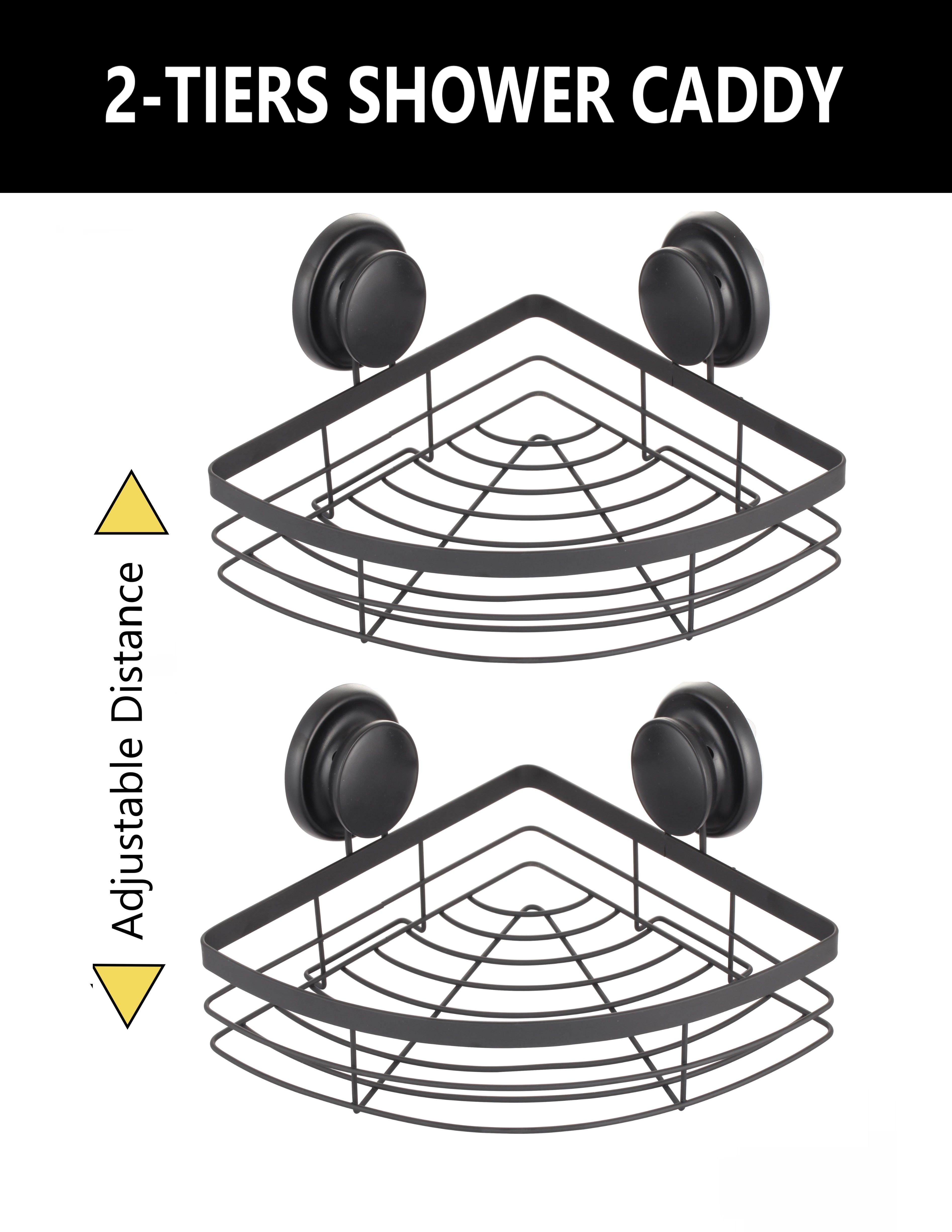 - 2 TIERS CORNER SHOWER CADDY SHELVES: A perfect shower caddy companion to double up the storage of shower products. You can shower with all things at your eye level, and say goodbye to the shower where you usually has everything at the bottom of the floor.