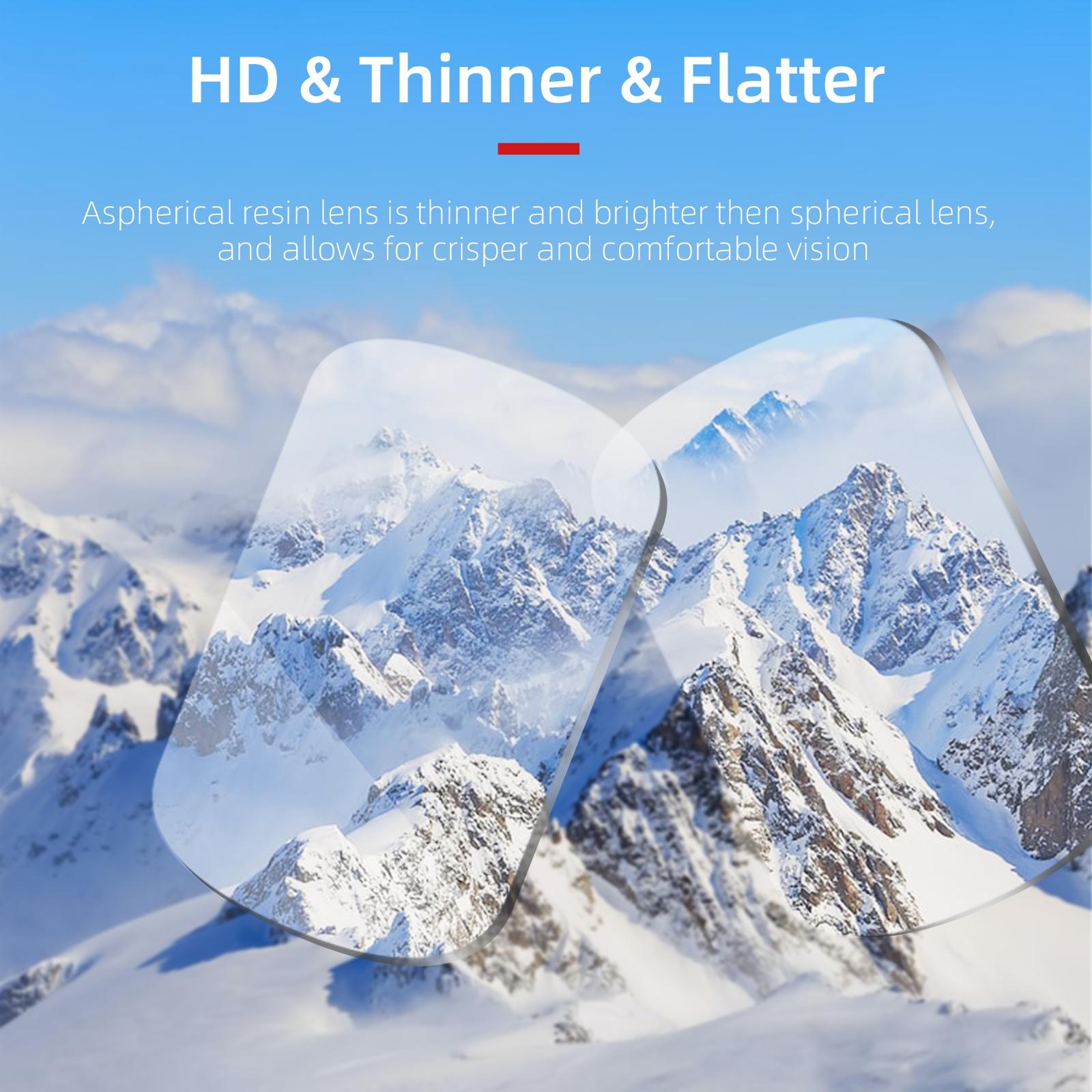 • The aspherical resin lens is thinner and more translucent than the spherical lens, the vision is lifelike, and the visual effect is more comfortable