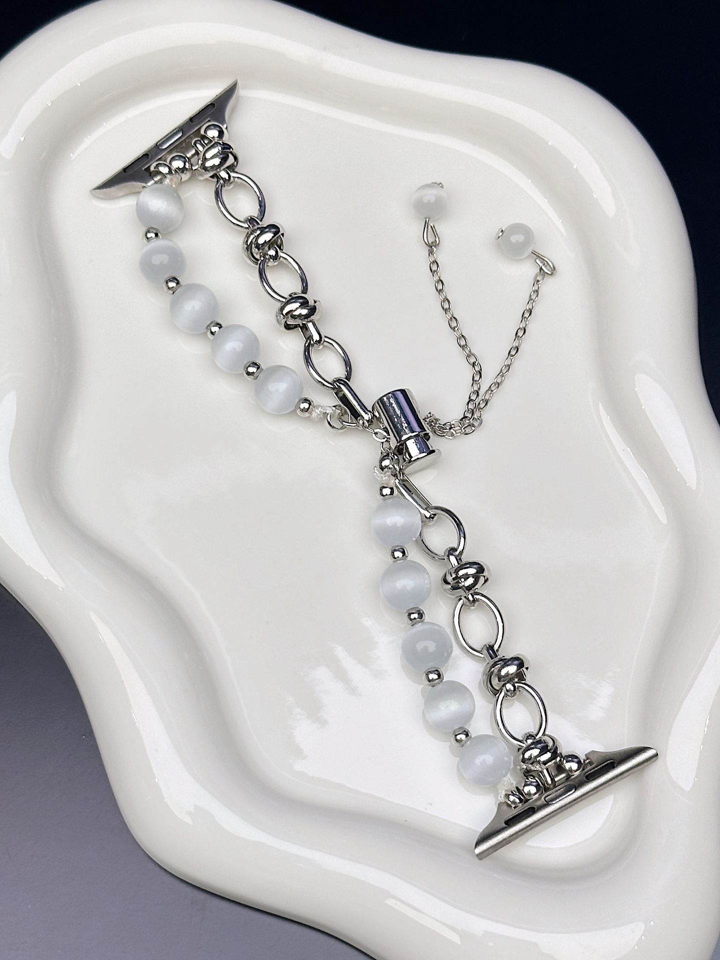 2-pcs Silver Elegant Cat’s Eye Beaded Bracelet Band for Apple Watch – Women’s Luxury Strap (Compatible Size :38/40/41MM )
