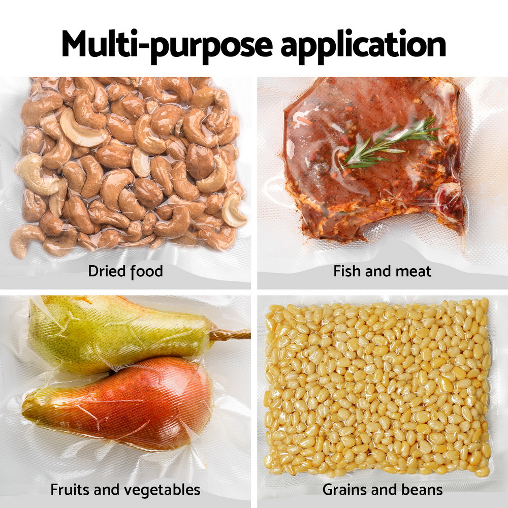 These two rolls of food vacuum sealer bags are perfect for keeping your food fresh for longer! The bags are designed to prevent spoilage by extracting all the air from inside the bag. Made from safe and odourless materials, these bags are tough and not easy to tear. The multi-layer bag design ensures maximum air extraction and is suitable for fruits, meat, cereals, vegetables, and more. The bags are compatible with most vacuum sealer machines, ensuring a strong seal and no air leakage. The diamond-shaped embossing makes them resistant to high temperatures, and they can be refrigerated and frozen. However, they cannot be heated in the microwave; only slowly heat the bags in water. The temperature range for use is -40 to 90 Celsius degrees. Reduce your food waste and keep your fridge stocked with our vacuum food sealer bags.