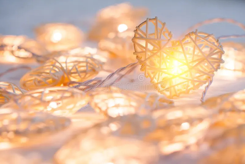20 Hearts/LED Bulbs (warm white) to a 3 metre length wire with a 3 x AA battery Pack