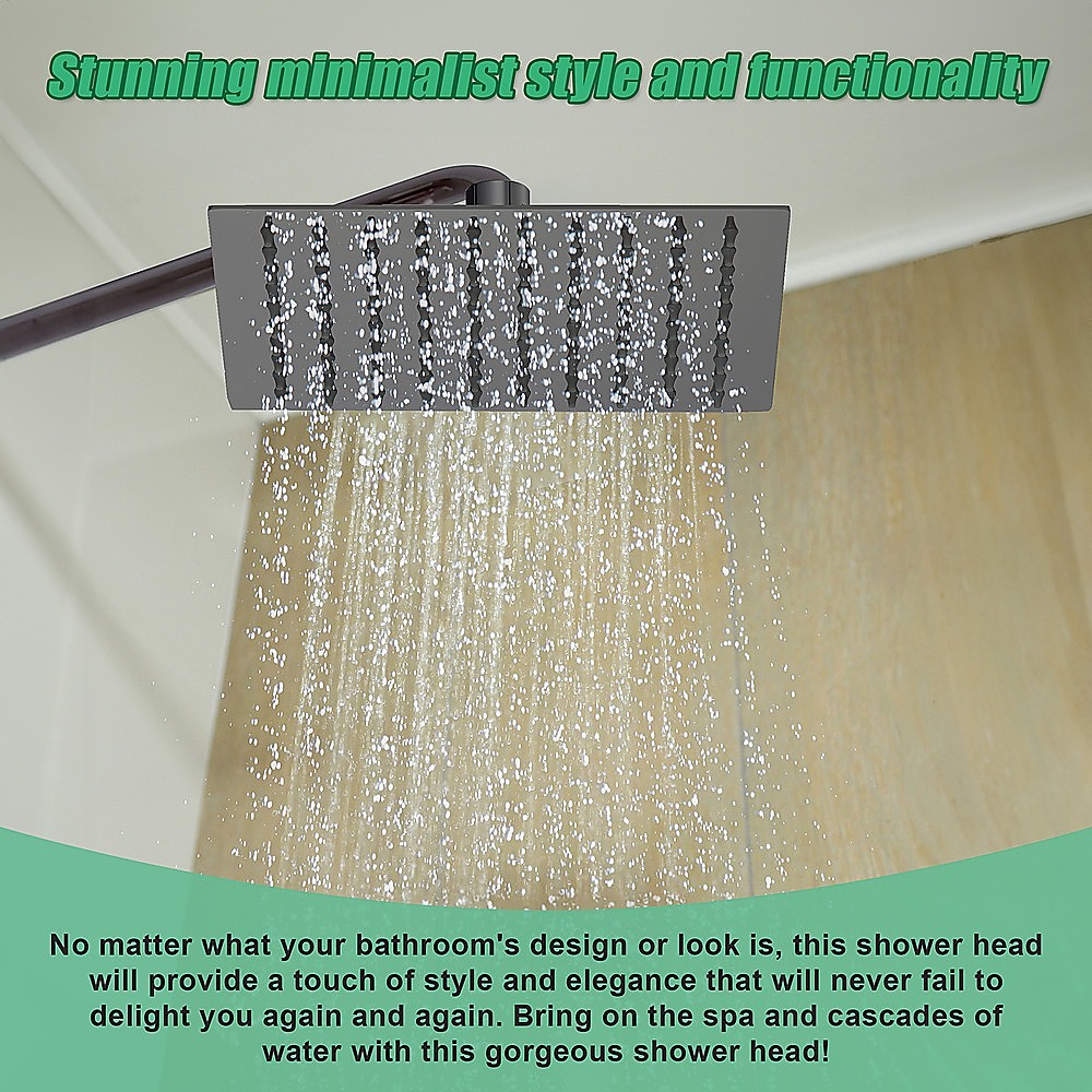This Rain Shower Head is designed to fit a standard shower thread, and the electroplated matte black finish will give this shower head a chic, sleek look.