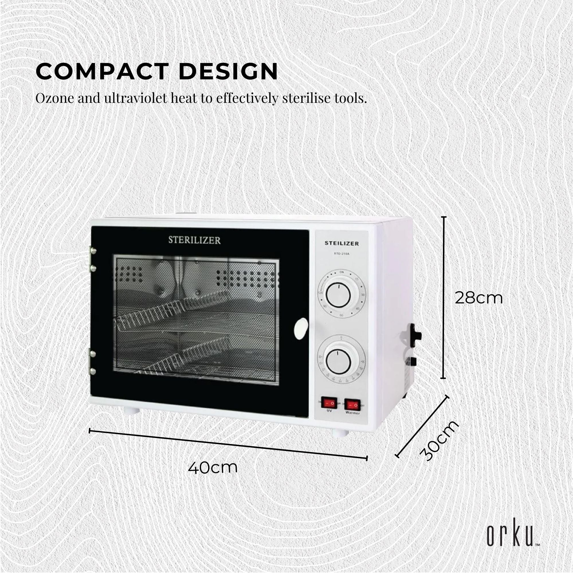 • Ozone and ultraviolet heat to effectively sterilise tools