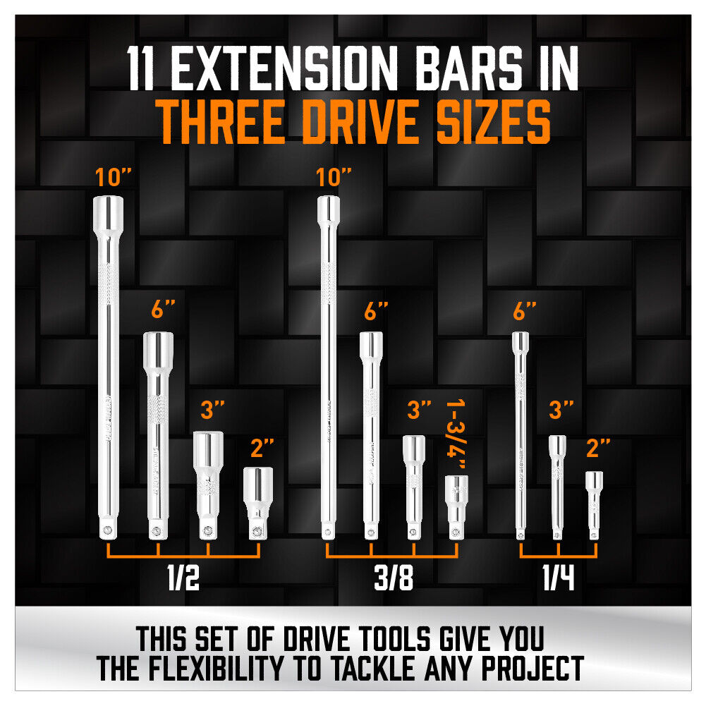 11x Extension Bars: 4x 1/2″ Dr. (2″/3″/6″/10″ long)