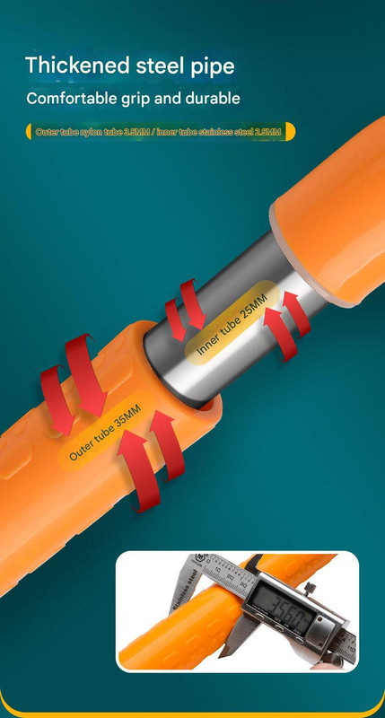 - Heavy-Duty Construction: A robust 2.5mm thick stainless steel inner tube (25mm diameter) is covered by a 3.5mm thick antibacterial nylon outer tube (35mm diameter) for superior strength and durability.