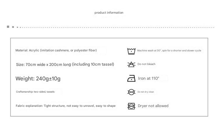 - Dimensions: 70cm x 200cm (including fringe 10cm)