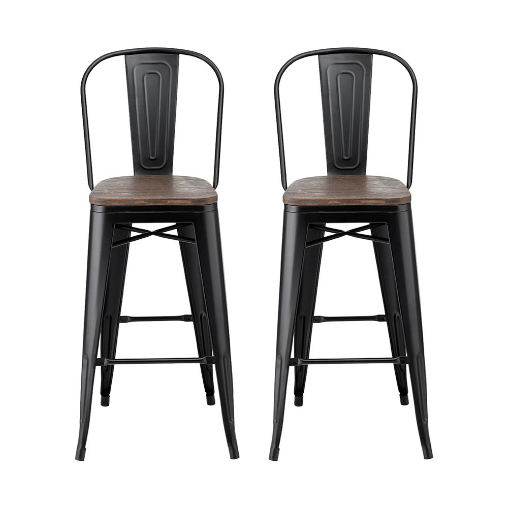 2x Artiss Metal Bar Stools Wooden Seat Retro Counter Stool