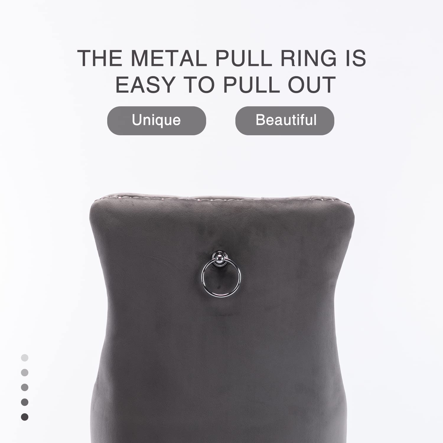 Solid and Durable Construction: The ring behind the back has a decorative effect, also help to pull the chair out. Sold as a set of 2 matching chairs to fully complete your space, Comes in one package. Springs and thick soft sponge padding provide maximum comfort. the solid dining room chairs are steady and strong to bear a great capacity up to 300lbs. Besides, the solid legs under the seat provides you with extra stability. Also, the velvet seat is of high quality, which is corrosion-resistant.