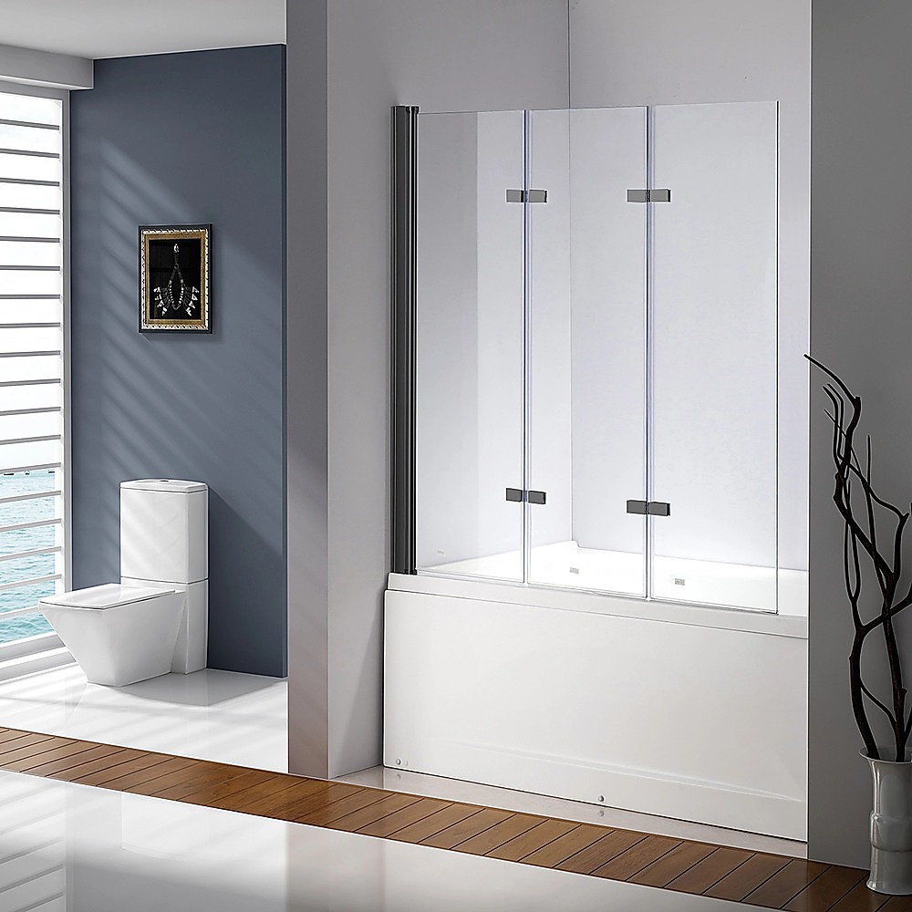 Our three-fold black bath shower door panel will brighten your existing bathroom or be a welcome improvement as a part of your bathroom renovation. This folding shower screen is a plus for both the homeowner and the home developer. The panel's frame is constructed of AS/NZS 2208 approved glass ensures safety and reliability.