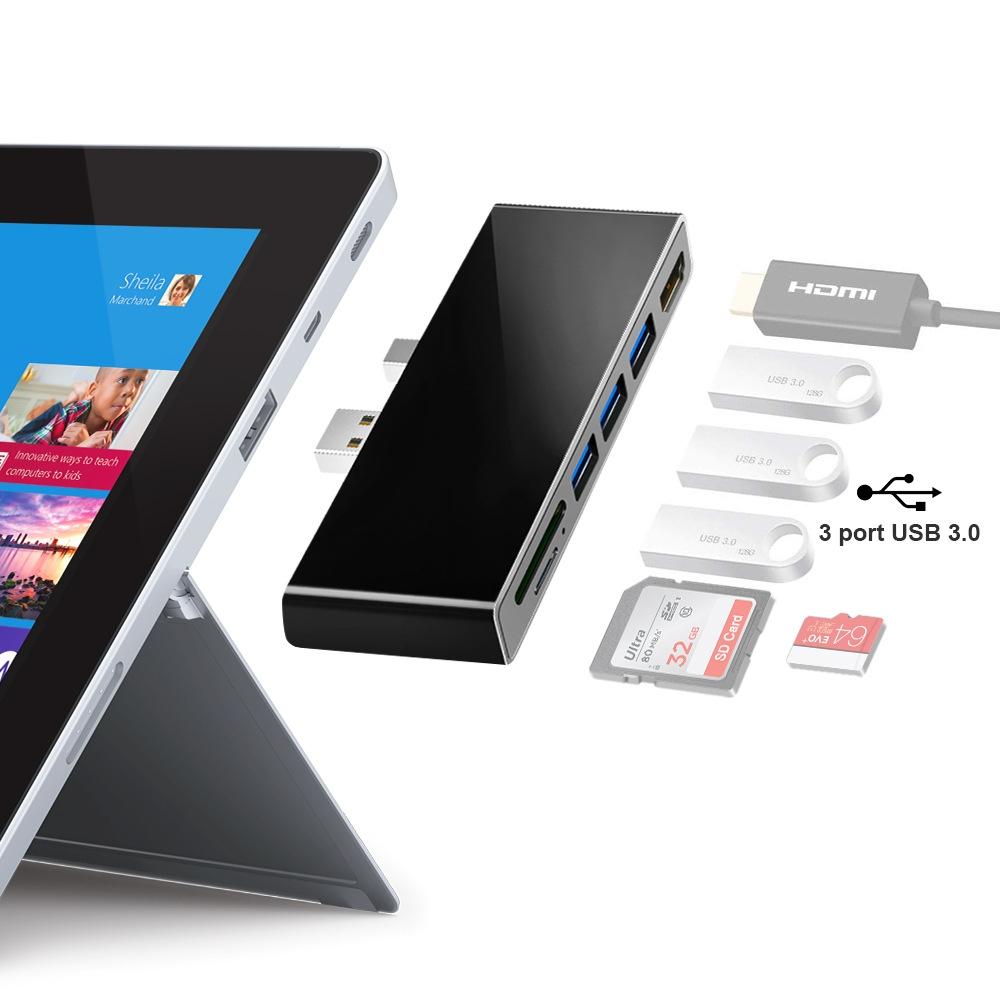 • 4K HDMI adapter with 3 USB 3.0 ports and SD/TF memory card reader