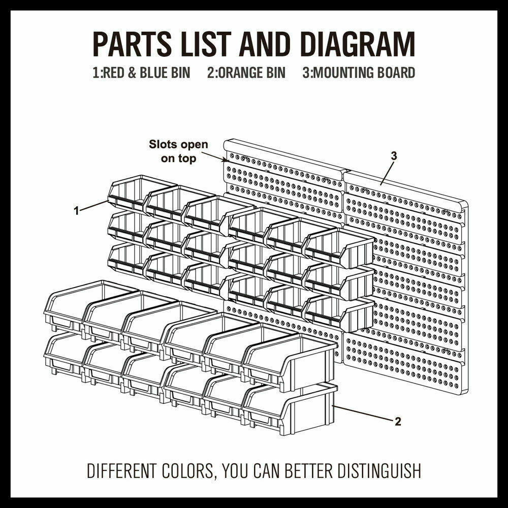 - Adjustable and Removable Bins Are Color Coded for Easy Organization of Parts and Tools