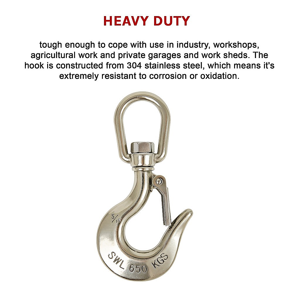 304 Stainless Steel Swivel Lift Clevis Chain Crane Hook with Safety Lock 650kg