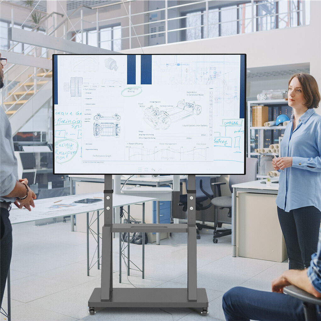 • Adjustable & Convenient: Easily adjust the height of the TV cart between 130cm and 160cm to suit various viewing preferences. The dual shelf design provides ample space for storing computers, DVD players, and other AV equipment, keeping everything you need at your fingertips.
