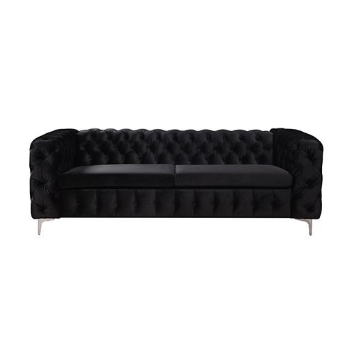 Package contents: 1×3+2 Seater Sofa Classic Button Tufted Lounge in Black Velvet Fabric with Metal Legs
