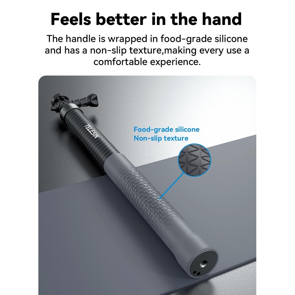 • Made of high-quality carbon fiber, high strength, 1/3 lighter than aluminum selfie sticks of the same size.