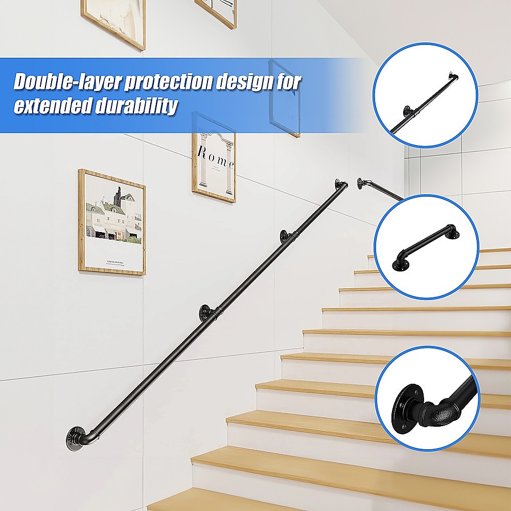 Our handrail for stairs is crafted from wrought iron and galvanized tube, featuring a corrosion-resistant coated surface and a double-layer protection design for extended durability. Not only does it exude sturdiness, but it also adds a unique flair to the staircase. The handrails boast smooth and stable corners, ensuring solidity while safeguarding against scratches, providing an extra layer of security for those who may feel unsteady on ladders. Plus, its metal construction allows for easy cleaning.