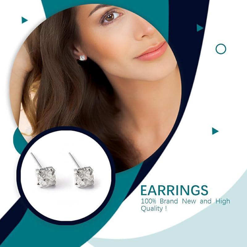 4/5mm Cushion Lab-Created Diamond Stud Earrings Women’s 14K White Gold Finish – 4MM