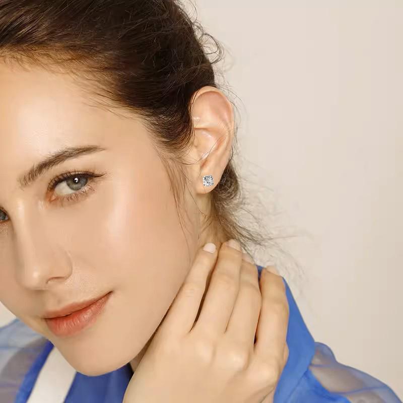 Adorn your ears with the timeless elegance of our 4/5mm Cushion Lab-Created Diamond Stud Earrings, finished in 14K White Gold. These earrings blend the allure of diamonds with the resilience of modern materials, creating a piece that’s both luxurious and wearable on any occasion.