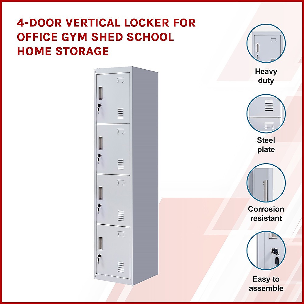 4-Door Vertical Locker for Office Gym Shed School Home Storage