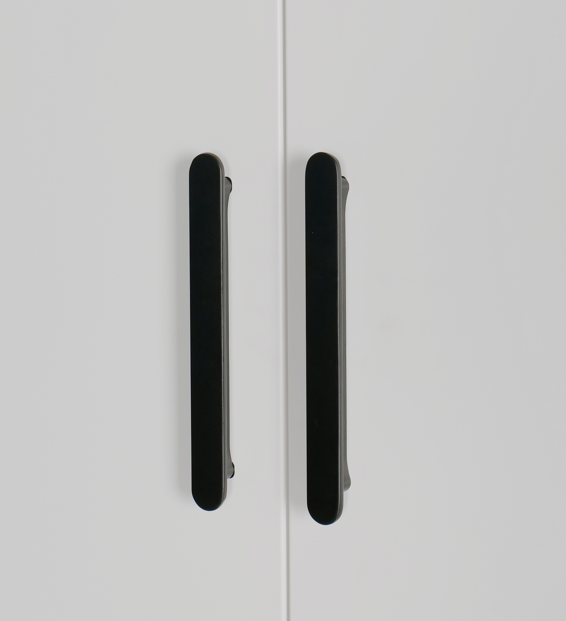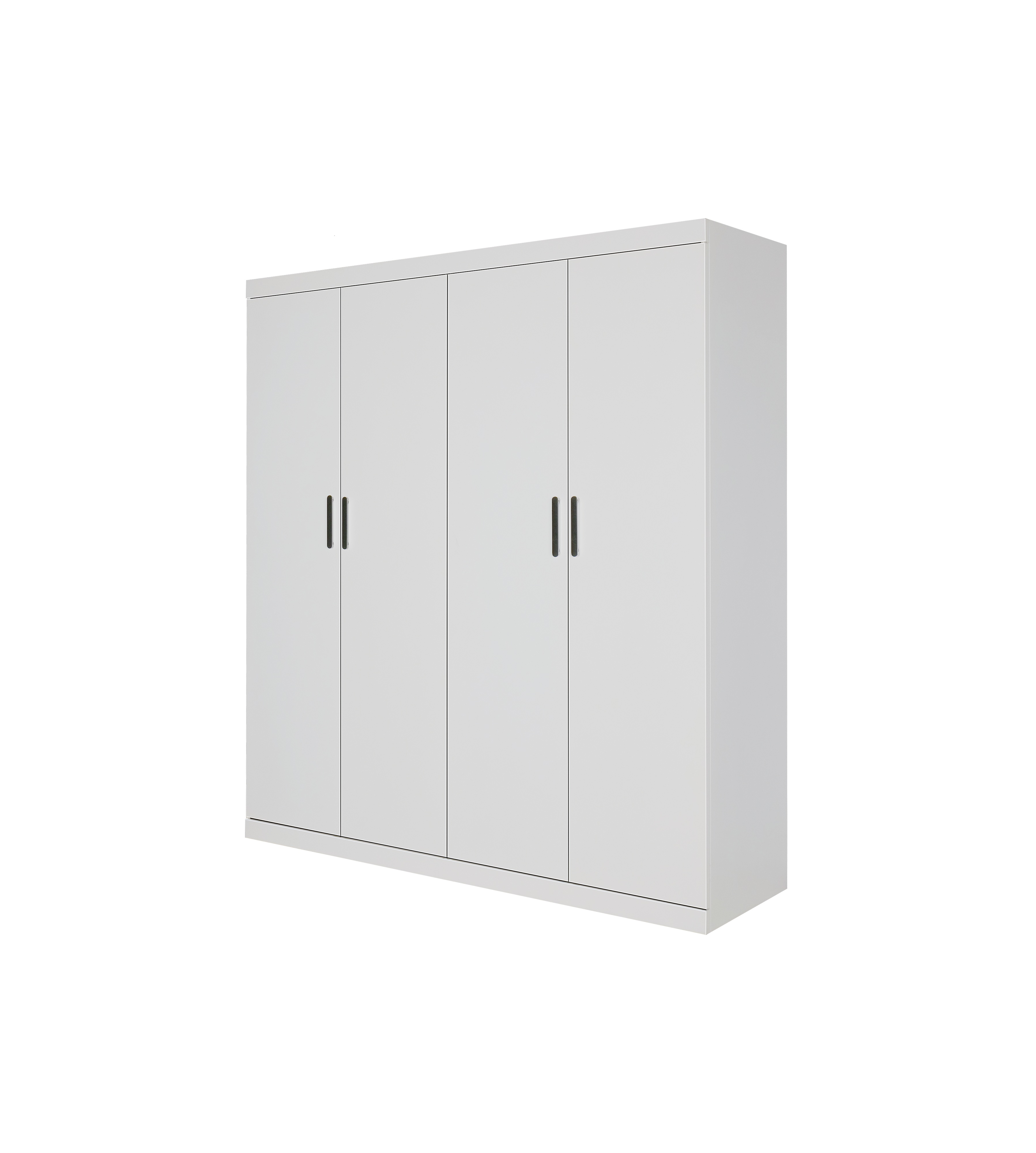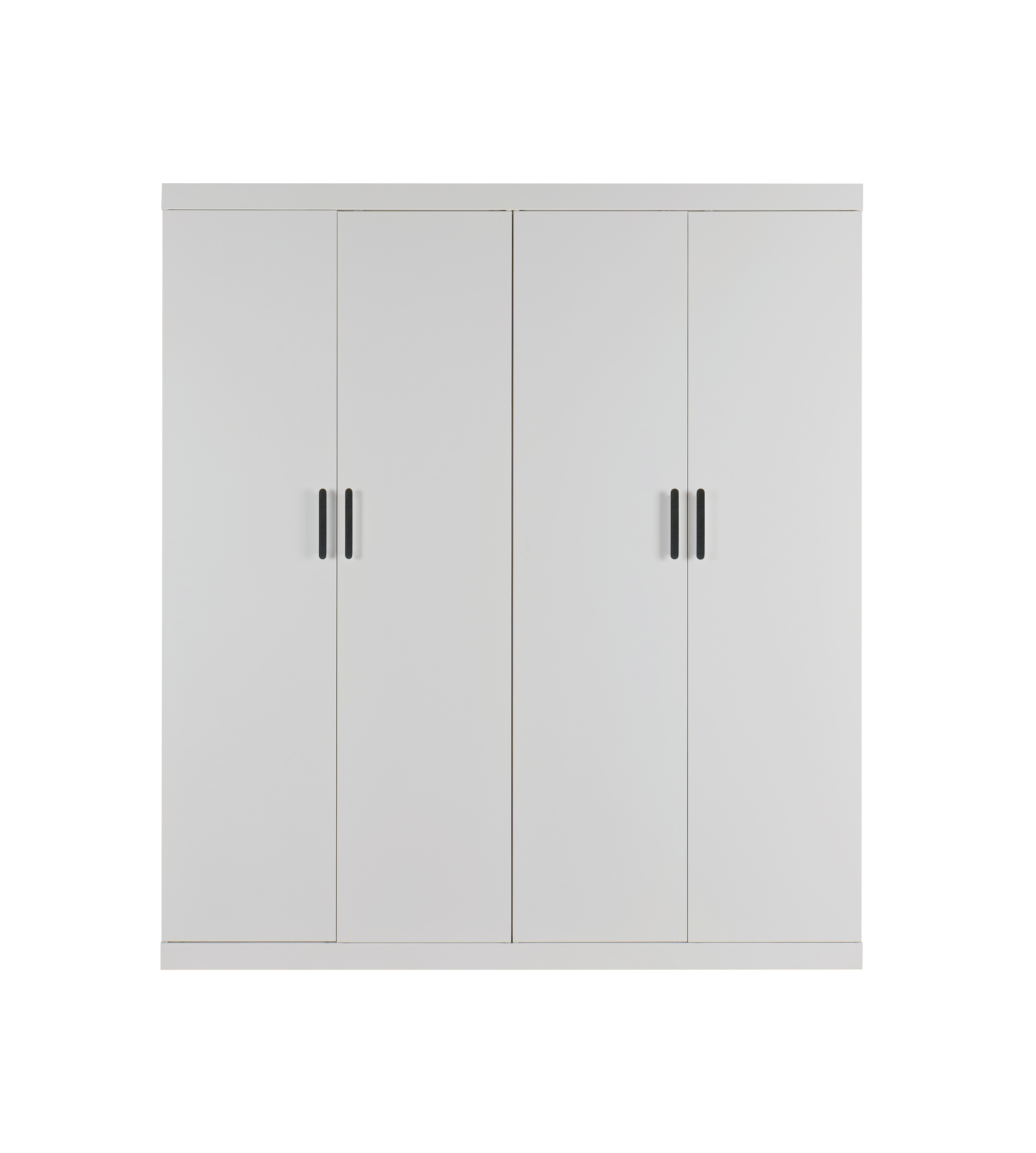 4 Door Wardrobe in White Gloss – Hanging Rail, Shelves & Black Handles